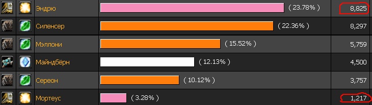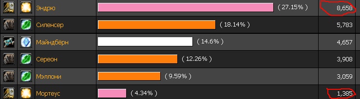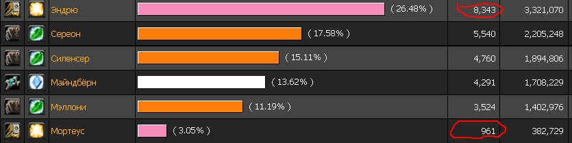 | Quote (Luciys) конкретно ники называй конкретики? держи. Синдрагоса - ссе траи больше 6 минут шли. И слова о том, что "я хилю когда нужно" меня не воодушевляют. к примеру в этих траях в танка (в ярого) за 6+ минут от мортеуса вошло только 170к, 300к, 345к хила. PS Если я что то не правильно понял, то, мортеус, будь добр объясни. (без мата) PSS И не нада спрашивать, помню ли я хоть один вайп из-за хила. Отвечу заранее - помню, и не один PSSS Логи относительно старые. полмесячной давности, но сейчас ситуация такая же, разве что логи не выкладывают