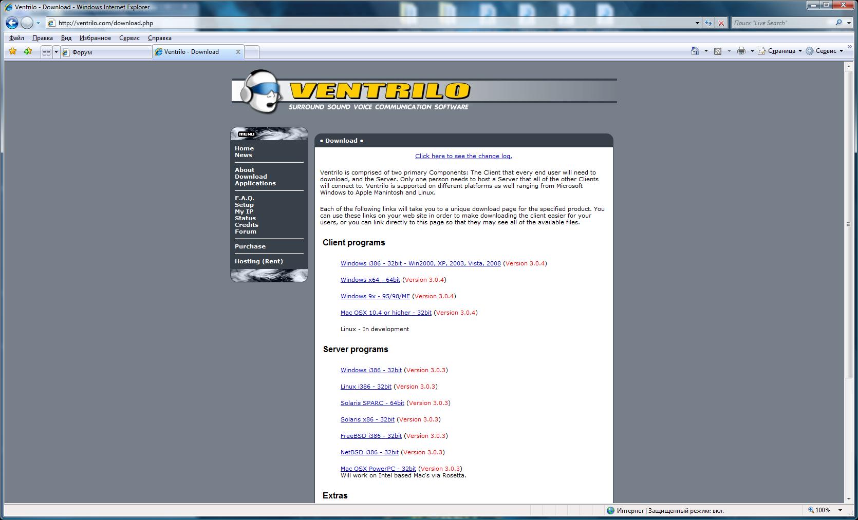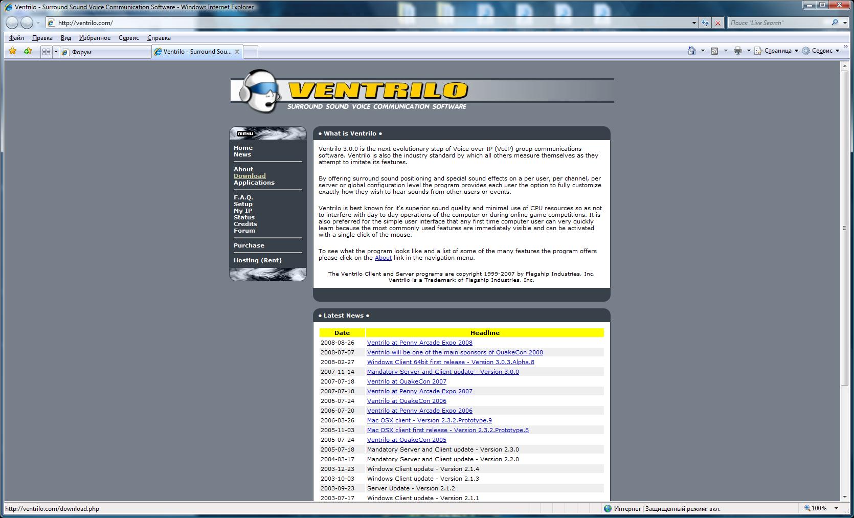 1.1. Заходим на сайт www.ventrilo.com.
