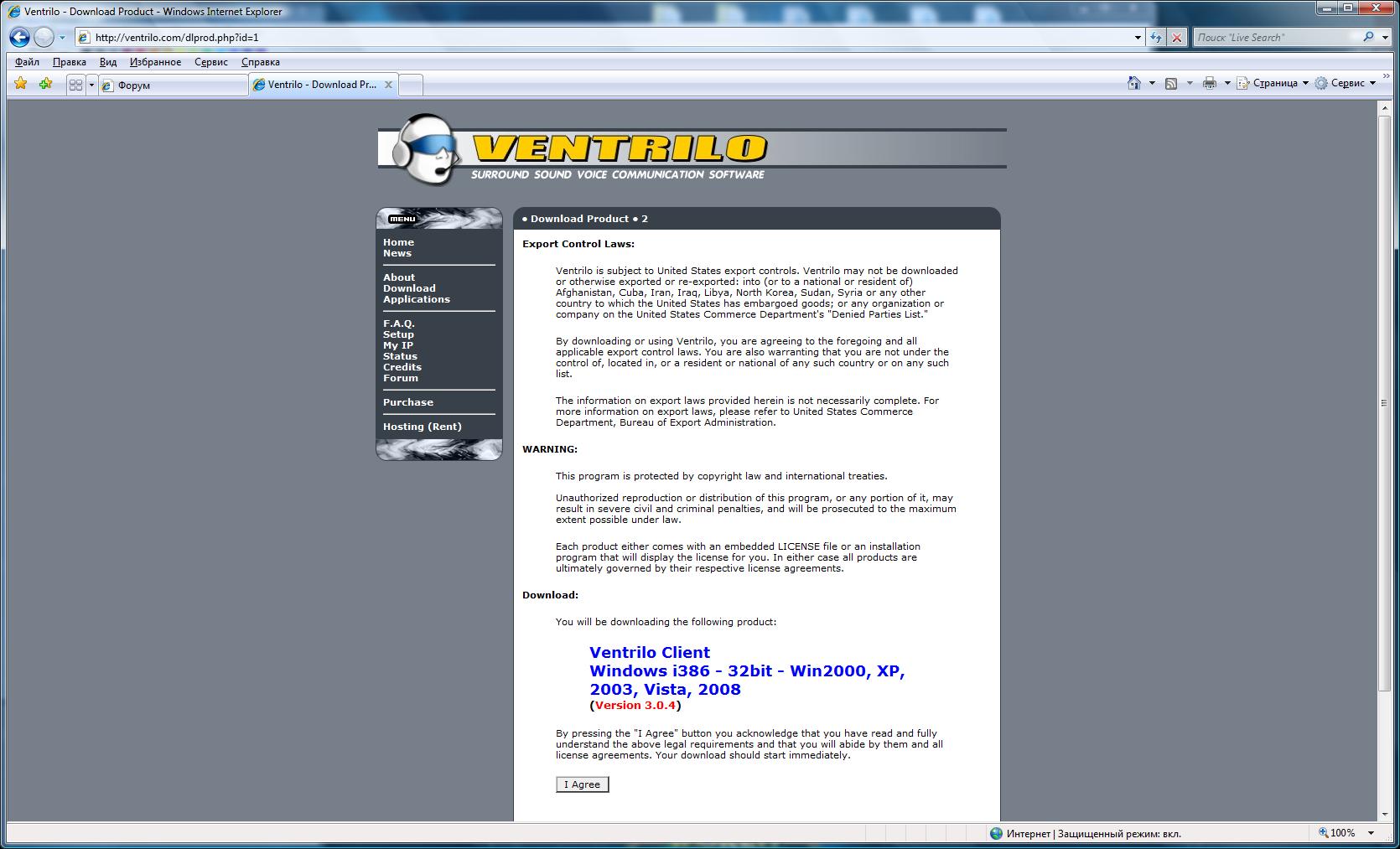 1.4. В открывшемся окне внизу нажимаем кнопку "I Agree". Должна начаться загрузка.